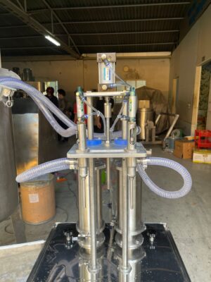 Máy chiết rót 2 vòi này được thiết kế dạng piston, kết nối trực tiếp vào van xã của bồn khuấy, giúp cho quá trình chiết rót trở nên đơn giản hơn, đồng thời tăng độ chính xác trong quá trình chiết.
